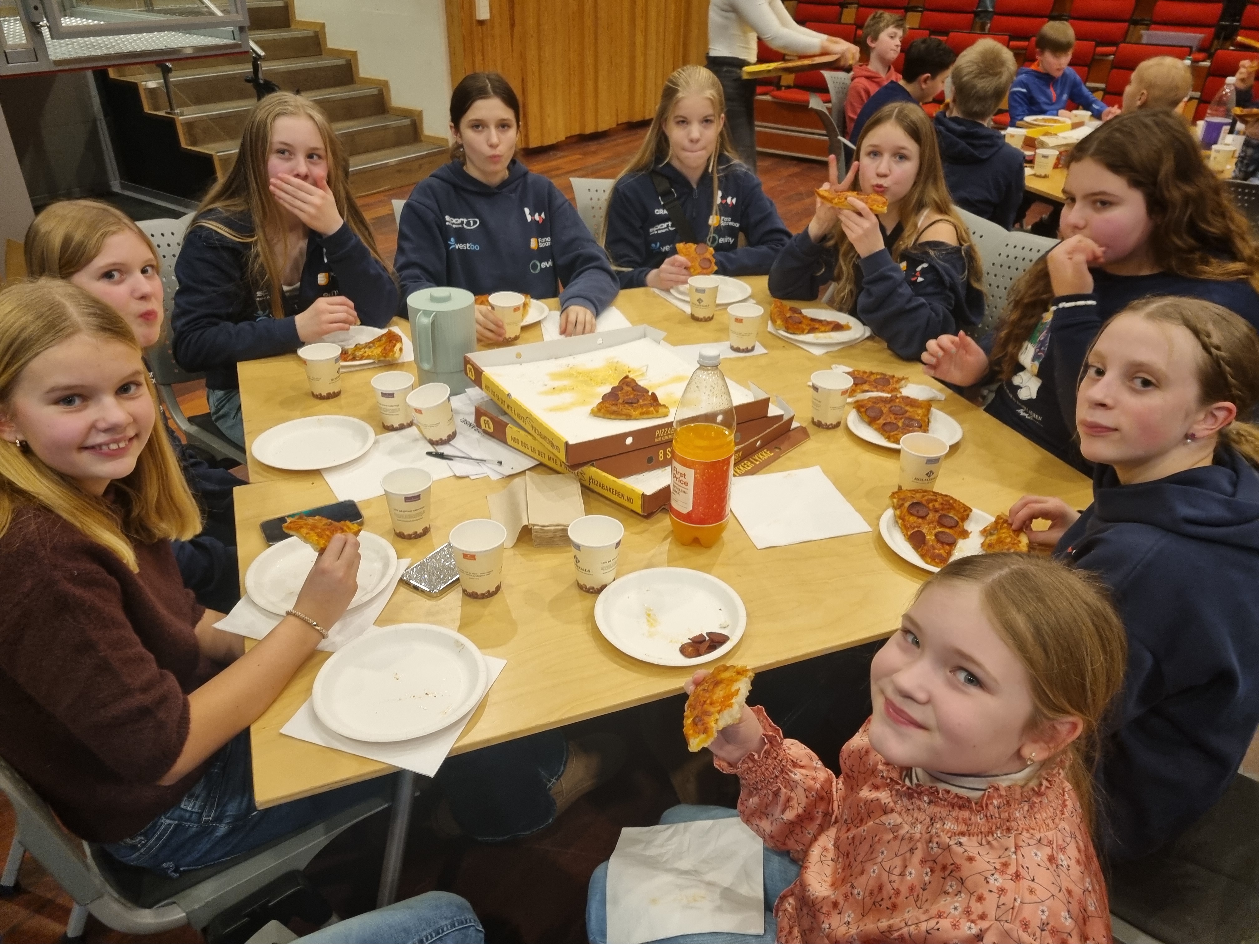 Sultne utøvere fikk så servert pizza fra vår samarbeidspartner Pizzabakeren, før de måtte bryne seg på litt quizz fra Ungdomsutvalget.