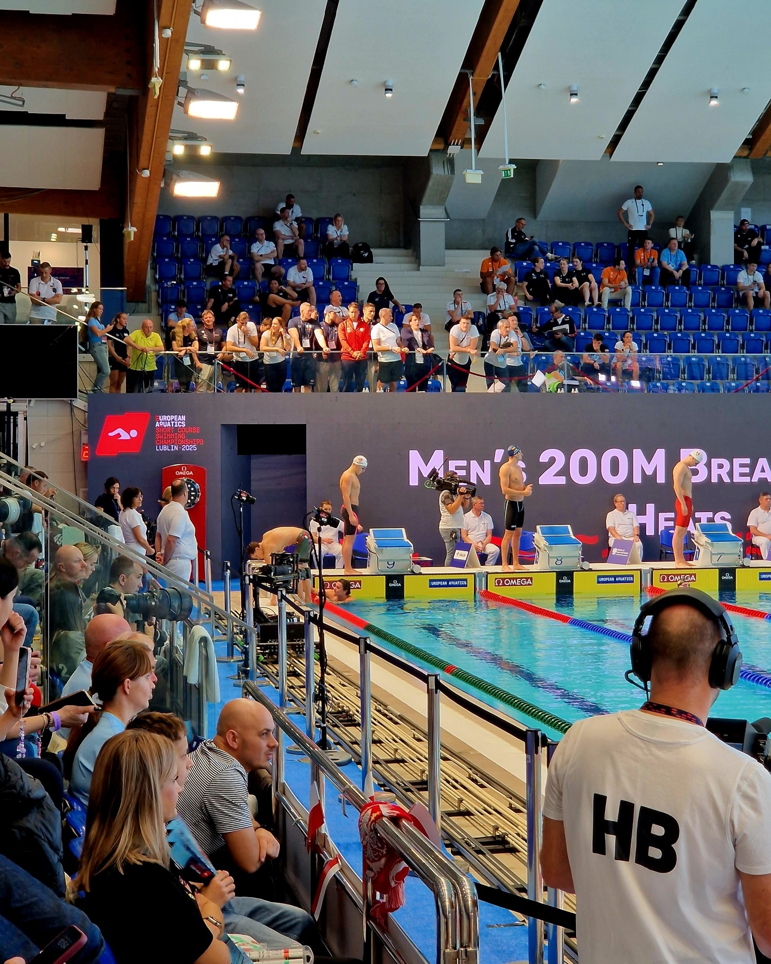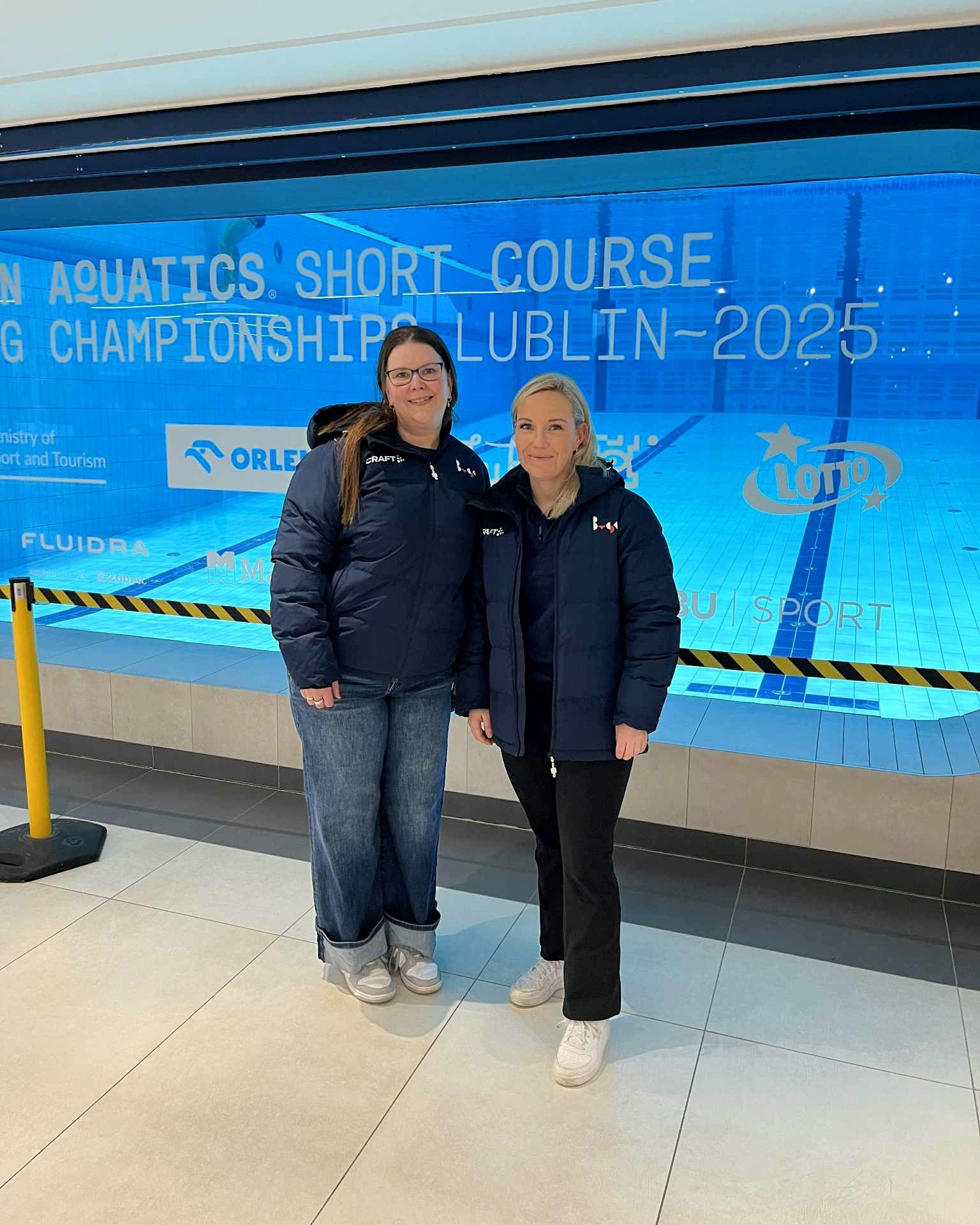 Vår sportslige leder Elna Luice Bønes og vår leder for svømmeopplæringen Charmaine Pettersen var også til stede i Polen for å følge Daniel sin mesterskapsdebut på dette nivået.Vi tok en kort prat med dem, og de sier at det har vært veldig lærerikt å få følge et stort internasjonalt mesterskap. Vi tar med oss masse ideer og tanker hjem til Bergen, både til klubben, men også til samarbeidet i Stevne Bergen. Vi har fått sett utøvere som setter imponerende norske rekorder, europeiske rekorder og ikke minst verdensrekord på 4x50 fri mix.